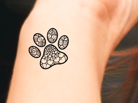 Paw Print Mandala Temporary Tattoo Dog Print Tattoo Etsy Denmark